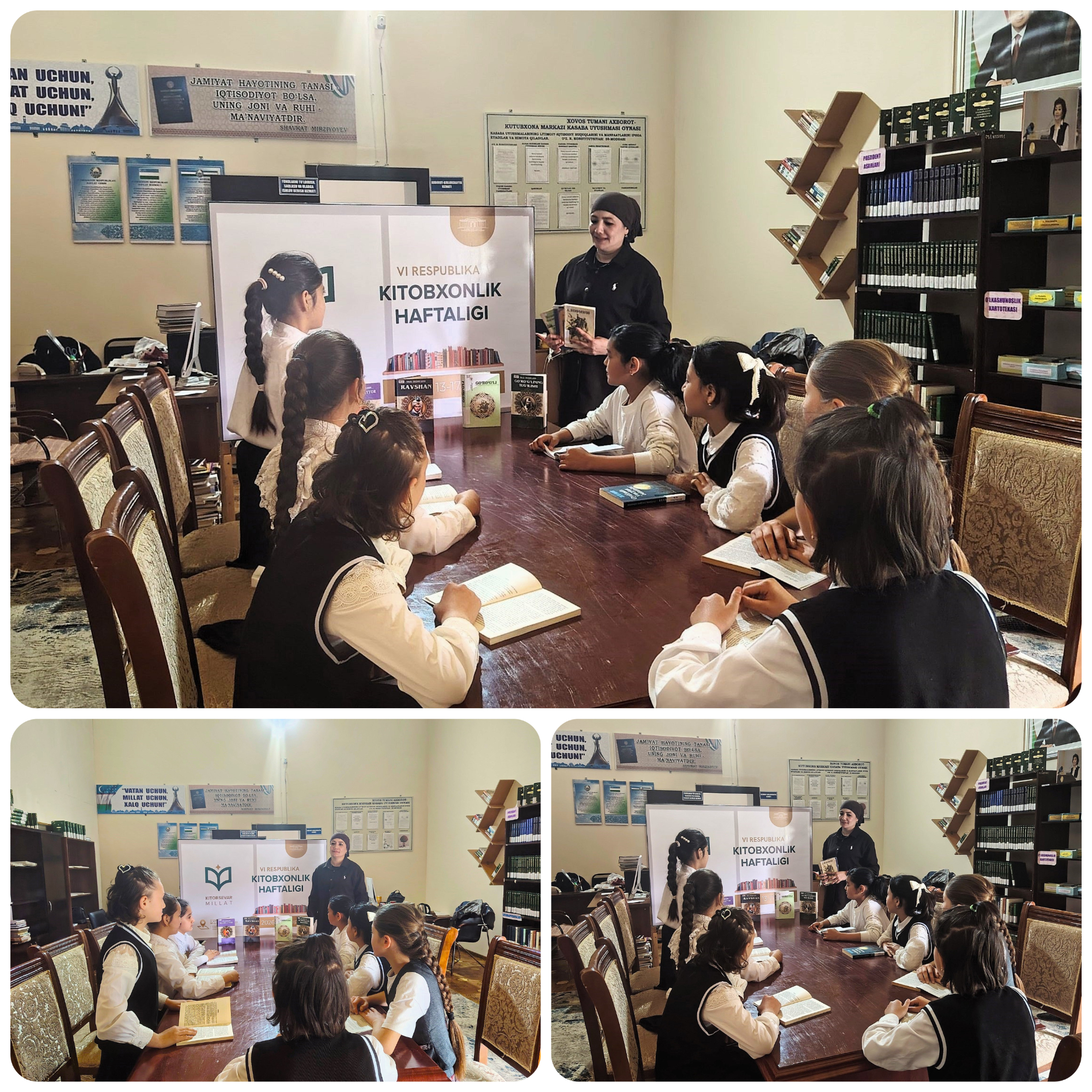 🔹2026 yil 17-aprel kuni Xovos tumani Axborot-kutubxona markazida “Kitobsevar millat” shiori ostida VI Respublika “Kitobxonlik haftaligi” doirasida “Kitobxon onalar kuni” munosabati bilan “Xalq og‘zaki ijodida ayollar timsoli” mavzusida davra suhbati tashkil etildi. Davra suhbatidan foto lavhalar.
